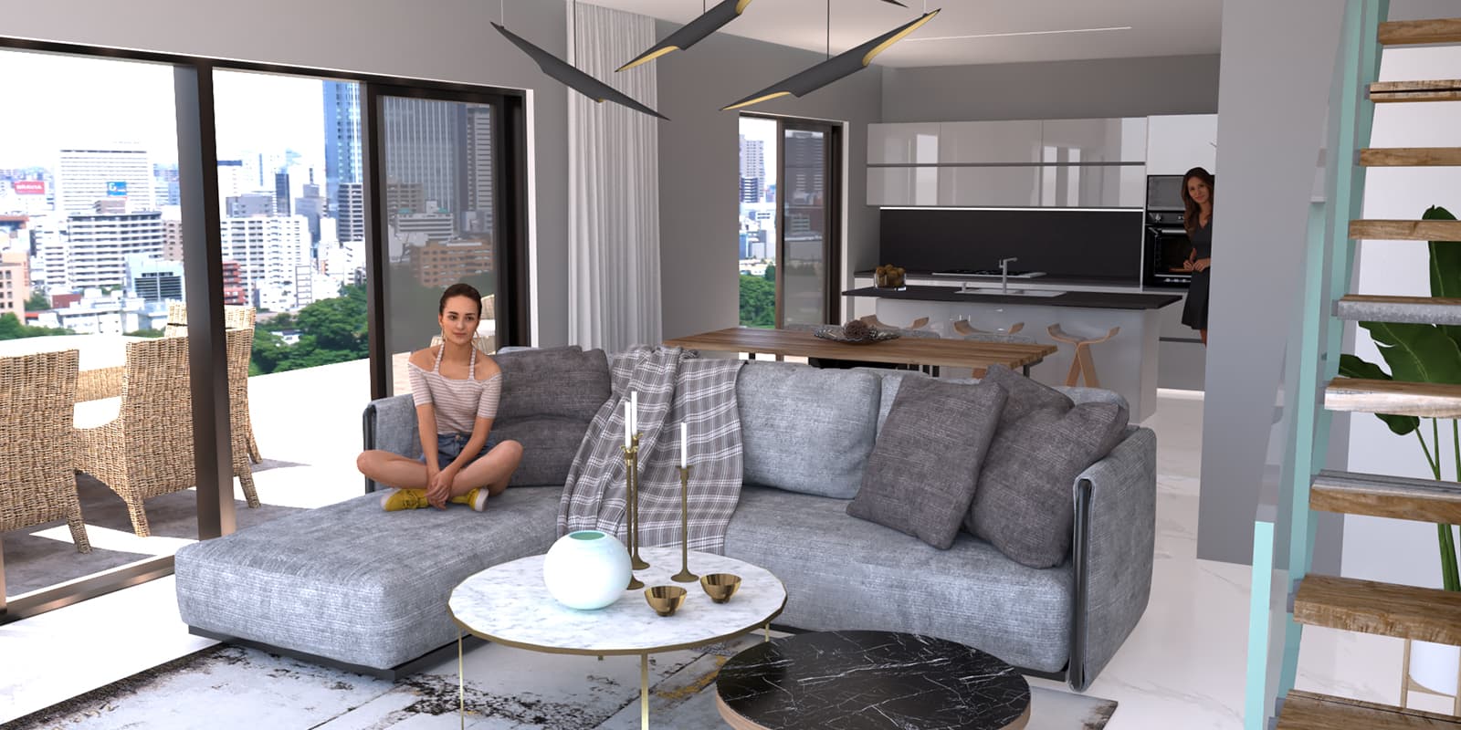 در طبقات پایین، دو مزونت با متراژهای ۸۸ و ۹۲ مترمربع قرار دارند که هر کدام به استخر خصوصی دسترسی دارند و فضایی دلنشین برای زندگی روزمره ایجاد می‌کنند. در طبقات میانی، دو آپارتمان بزرگ ۱۱۴ متری با سه اتاق خواب طراحی شده‌اند که نورگیری عالی و فضای داخلی کاربردی دارند. در بالاترین طبقه نیز دو مزونت شیک با متراژهای ۹۰ و ۱۰۱ مترمربع قرار گرفته‌اند که با چشم‌انداز زیبای دریا، تجربه‌ای متفاوت و لوکس از زندگی شهری را ارائه می‌دهند.